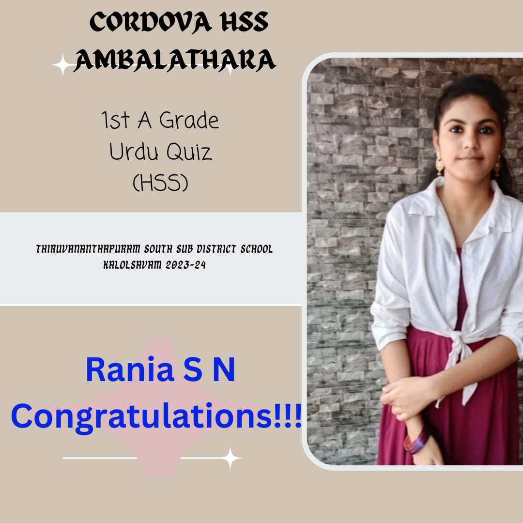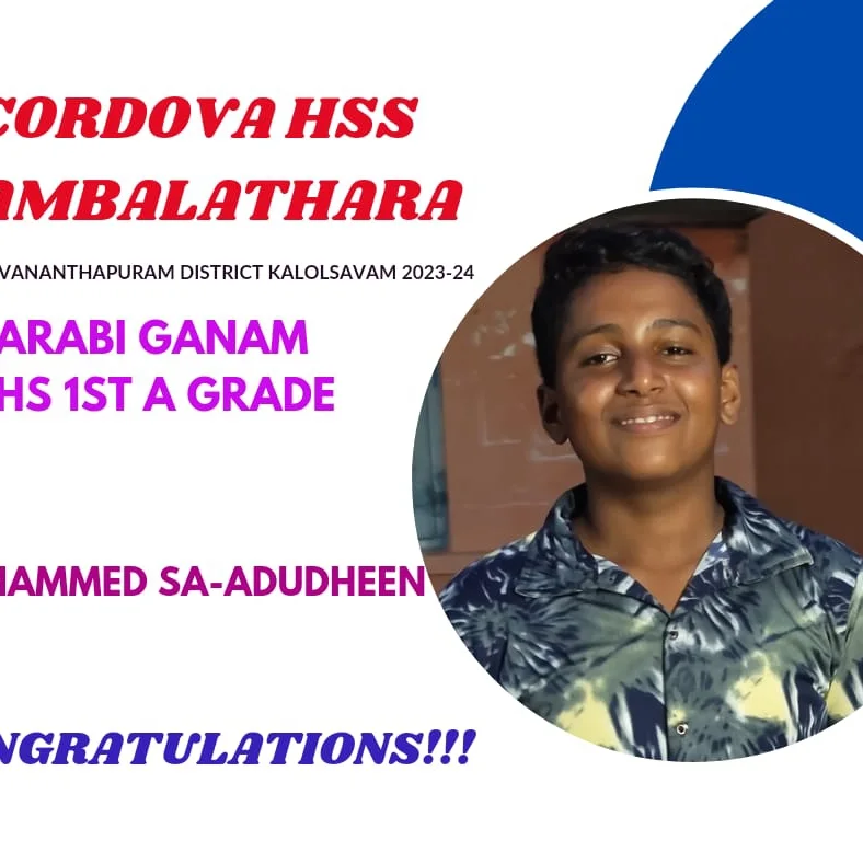 Cordova Nagar, Poonthura P.O Thiruvananthapuram – 26, Kerala School Hs Code: 43107, Hss Code: 01156